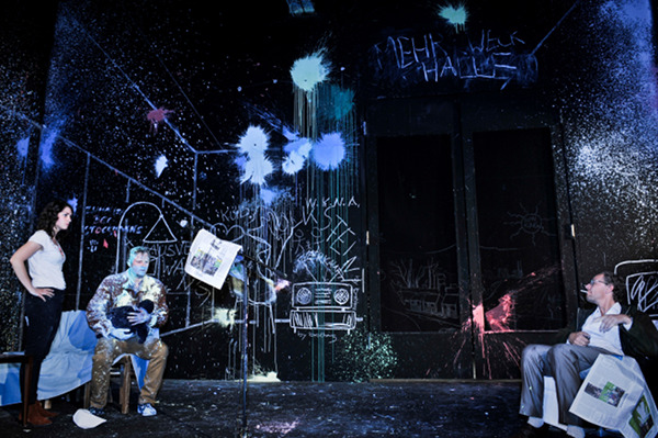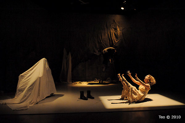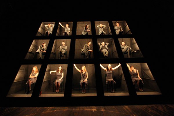 Play de Beckett met en scène un triangle amoureux. L’œuvre a trouvé en la personne de Sahika Tekand, l’une des figures majeures du théâtre turc contemporain, une interprète idéale de la grammaire minimaliste et répétitive du dramaturge, où le mot s’inscrit dans des règles pratiquement musicales. Sahika Tekand a élaboré une conception très personnelle de la pièce, articulé autour d’un dispositif scénique vertical. Chaque acteur y est confiné dans l’isolement d’un espace clos, intervenant en fonction d’un rythme qui s’emballe, souligné par un jeu d’éclairages alternés. Play est donc un spectacle des sens, où lumière, rythme et gestualité sont taillés sur mesure pour servir la sonorité du texte. Cette vision magistrale de la pièce de Beckett – qui a rarement trouvé un mode d’expression scénique aussi proche de son écriture -, est incarnée avec brio par les comédiens du théâtre municipal d’Istanbul, l’une des institutions les plus prestigieuses de la scène turque.