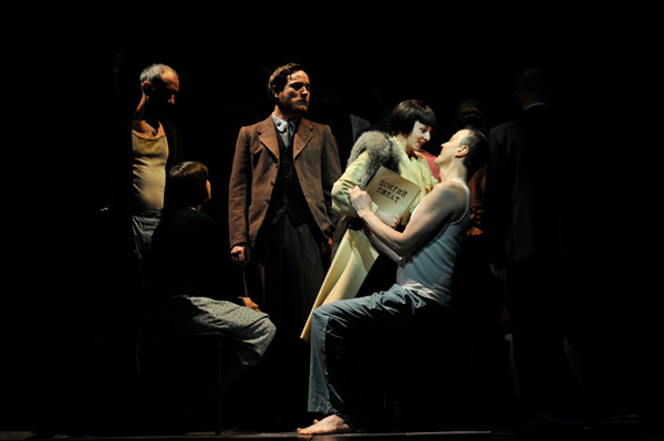 Que retenir de cet énorme roman épique et fantastique, qui parle d’amour, d’art et de politique, lorsqu’on a le désir de le faire vivre sur la scène de la Cour d’honneur du Palais des papes ? Simon McBurney a choisi d’être fidèle à la construction volontairement très déconstruite du Maître et Marguerite, comme à la folie de son récit qui court de Moscou à Jérusalem, du ciel aux enfers. C’est de ce prodigieux foisonnement qu’il fait surgir une forme théâtrale et dégage un chemin pour traverser trois histoires entremêlées, qui ne se rejoignent et ne livrent leurs secrets qu’au terme d’une aventure à tiroirs. Pour cela, le metteur en scène ne refuse aucun des éléments constitutifs de l’écriture de Boulgakov : ni la passion et la compassion qui animent le Maître et Marguerite dans leur amour comme dans leur liberté, ni le comique plein d’ironie et terriblement jubilatoire de la critique sociale et politique, ni le tragique angoissé et désillusionné du regard qu’un auteur porte sur son œuvre, ni les images poétiques et oniriques qui emportent les personnages dans un au-delà fantastique. Le Maître, c’est cet écrivain solitaire et oppressé à l’image d’un Boulgakov écrasé par la folie tyrannique du pouvoir stalinien ; Marguerite, cette femme amoureuse, entière et courageuse. La force de Simon McBurney réside dans sa capacité à réunir les moyens artisanaux et traditionnels du théâtre, qui lui permettent par exemple de figurer un cheval en utilisant seulement quelques chaises, et les nouvelles technologies les plus sophistiquées, qui font notamment voler ses comédiens dans le ciel de Moscou sans que ceux-ci ne quittent d’un seul pied le plateau. Avec brio, il juxtapose les univers imaginés par Boulgakov : le Moscou d’un Staline qui rôde et surveille, le ciel et les enfers d’un Satan qui ose dire les vérités dérangeantes, une Jérusalem qui voit Ponce Pilate et Jésus philosopher ensemble, mais aussi un hôpital psychiatrique, refuge des écrivains las et désespérés. S’appuyant sur la grande maîtrise de ses acteurs et de toute son équipe artistique, il réussit le tour de force de nous faire passer en deux secondes d’une histoire à une autre, navigant à notre aise dans ce labyrinthe d’émotions et de pensées. Roman inscrit dans le passé récent d’un XXe siècle de terreur, roman dénonciateur de la corruption des esprits à laquelle il oppose les élans du cœur, roman intemporel secouant les tendances apathiques qui s’emparent parfois du genre humain, Le Maître et Marguerite permet à Simon McBurney et à Complicite de fabriquer ce théâtre généreux, poignant et imaginatif qui fait, aujourd’hui encore, de l’écriture littéraire et scénique l’un des meilleurs moyens de communication que les hommes aient inventés. JFP